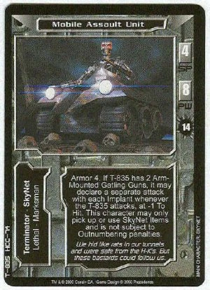 T-835 Mobile Assault Unit — модель восьмисотой серии терминаторов, разработанных SkyNET. Созданы для замены окончательно устаревших Т-1. Находили и уничтожали цели в местах, недоступных для более крупных роботов.