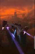 The AFJ-90 "Armageddon" is a series of HK-Aerial models as a tier 4 unit, used by Skynet in the Genisys timeline. It is a direct upgrade of the AFJ-80, albeit increase in size and redesigned, with increased spacing for the weapons bay for the unit to fit with latest weapons such as plasma rockets or missiles, cannons, or even launchers, which prioritizes air offensive capability.