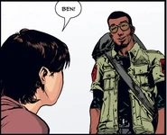 Ben Oliver arrived in the Pasadena One colony in 2023.[1] Before Kyle Reese rescued him he was a lone wanderer, feeding off the dead.[2] After arriving in the colony, the parents of a woman called Paige cared after him. Six years later, Ben had a very close relationship with Paige, although neither was ready to accept their feelings for the other.[3]