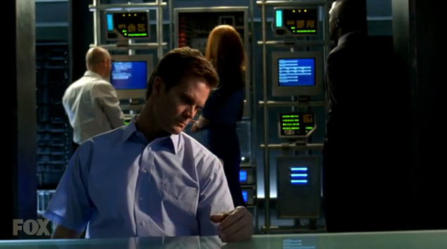 John Henry and Savannah Weaver are playing with their toys, when suddenly his screen turns orange and his body begins to malfunction. He grabs Savannah's arm, squeezing it. She escapes screaming, and he begins accessing data from the database. The Turk is shown onscreen, and he gets up and walks over to where the original Turk hardware is integrated into Project Babylon's computer racks. Just before he can reach it, Mr. Murch runs into the room and shuts the computers down. As Catherine Weaver and James Ellison arrive at the scene, Murch informs them that an outside source seems to have made an attempt at "killing" John Henry. Catherine Weaver orders him to reactivate John Henry, but without his connection to the 'net, just to be safe. Unfortunately, John Henry sees the Internet as his world and isn't fully operational, forcing them to connect him. John Henry determines the outside source to have a code similar to one produced at Cyberdyne Systems. Effectively making it his brother.