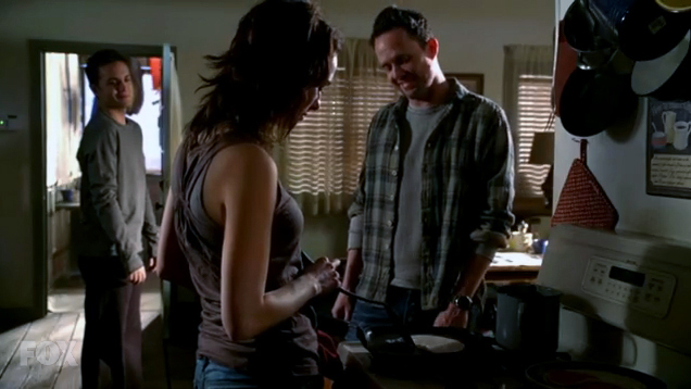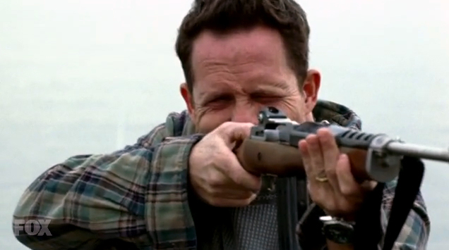 John and Charley are alerted to an attack thanks to the security system Charley installed. They flee to the dock under a hail of gunfire from an unseen shooter. John gets into the boat, but Charley stays behind to provide cover fire for John before blowing up the dock.