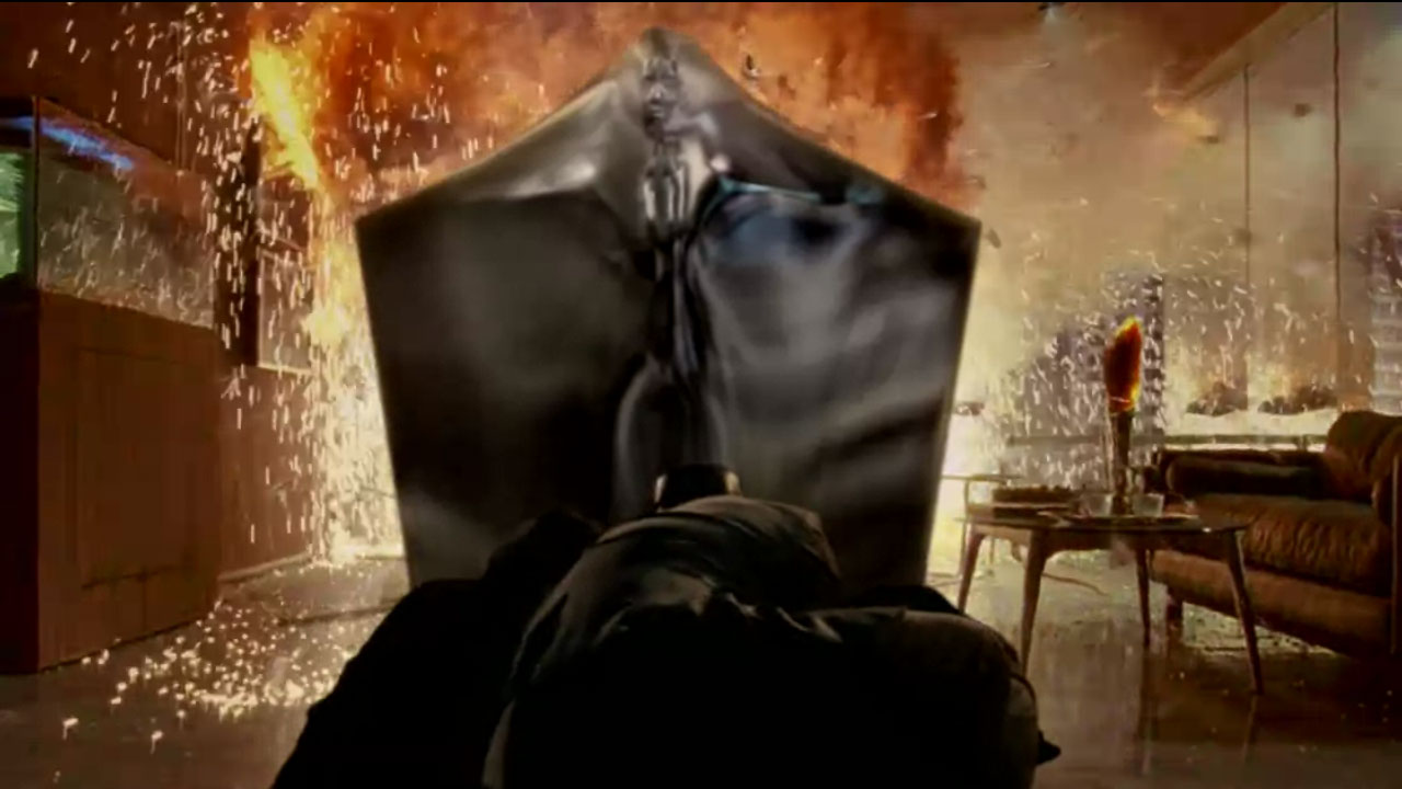 The Terminator that was after Savannah Weaver changes objectives to hunting John, having seen Sarah on the news. He visits a gun shop with the intent of purchasing silencers but the proprietor says that he doesn't sell those. The T-888 bribes him into being directed to a seller who does. Once the T-888 has acquired the silencer, it prepares to capture Sarah. However, once he kills a guard, Weaver appears. The Terminator attempts to shoot her but the bullets reveal her liquid metal nature. She then retaliates by throttling her foe with one arm and connected the other to a fuse box, electrocuting the T-888.