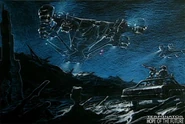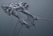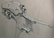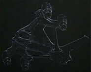 The Mark Nine Aerial Tilt-Turbine Heavy Assault Drone Aircraft[1] or HK-Bomber is a larger, more powerful version of the Aerial Hunter-Killer. Designed as a Vertical Take Off and Landing (VTOL) heavy assault platform, the Hunter Killer Bomber features two additional engine pods to support its greater size and weight. Also featured is a larger, more enhanced gun platform, with more Phased Plasma Cannons than the HK-Aerial, and additional armor, giving the Hunter Killer Bomber greater resilience to Tech-Com weapons.