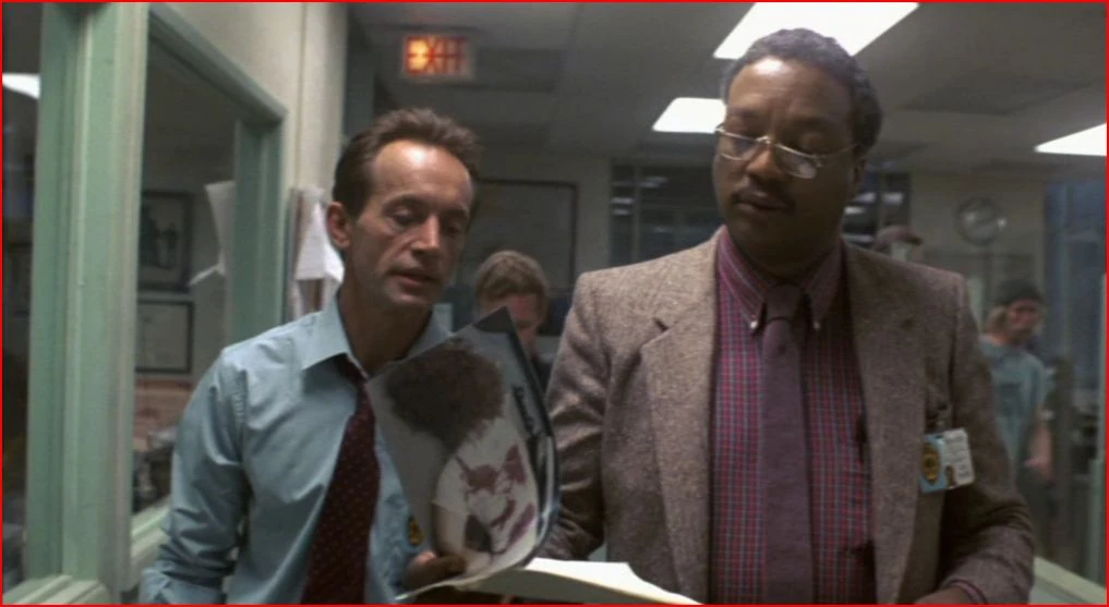 Hal rewatched the interrogation on TV with Silberman, Sarah and Traxler. Hal and Silberman were still unconvinced that the story was true. Sarah asked how the Terminator was able to avoid being killed. Traxler said that he was wearing a bulletproof vest and Hal said that he was on PCP and broke every bone in his hand and wouldn't feel it for hours.