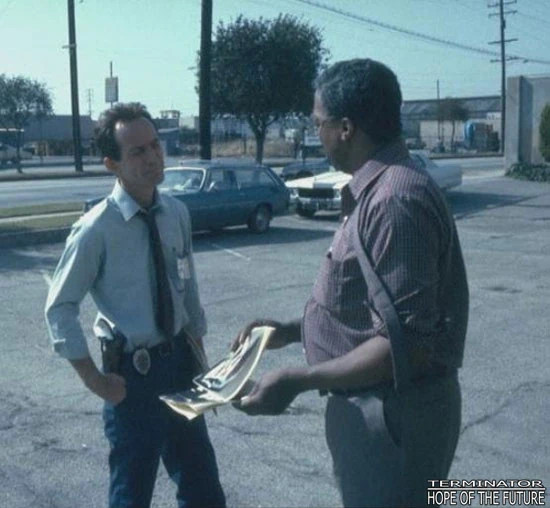 Sarah was taken to the station after they rescued her from Reese and unbeknownst them, the Terminator. Hal was present at the station. Hal later witnessed Peter Silberman, whom he ridiculed, interrogate Reese. Like most, Hal simply assumed that Reese was crazy or on drugs. As he tried to tell Traxler a story about Dr. Silberman, showing a scorned attitude towards him, Traxler told him to shut up.