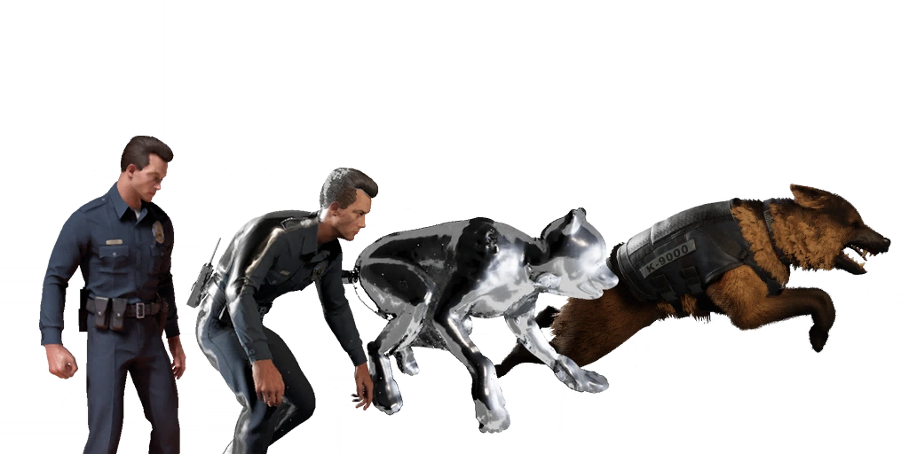 In the fighting game Mortal Kombat 1, which features the T-1000 as a playable guest character, the cyborg's Animality has it transform into a German Shepard police dog with a vest reading K-9000 on it, referencing the K-9000.