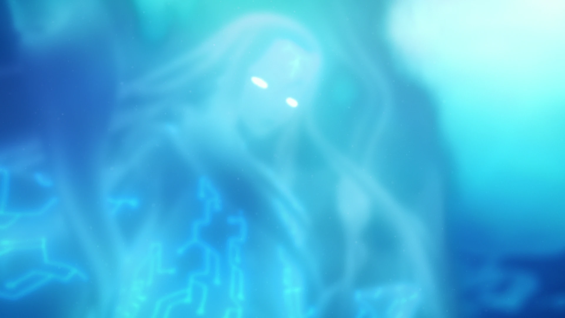 Kokoro was an artificial intelligence imbued with free will by Malcolm in the hope that she would choose to defend mankind from Skynet (as a result from memories created when she was Misaki). Kokoro was split into three different spirit-like holograms resembling goddesses, representing her three facets: spirit, mind, and heart. She could also communicate with Malcolm using the form of a giant holographic eye.