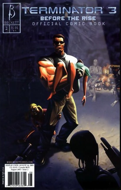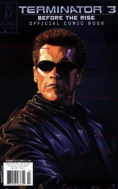 T3: Before the Rise is an official 2-part, 48-page prestige format comic series created by Beckett Comics in July - August 2003. The two issues were helmed by Ivan Brandon. (W: Ivan, P: Goran Parlov, I: Salgood Sam, C: Paul Mounts, covers by Esad Ribic and Amano). It chronicles the capturing of the T-850 by the Resistance.