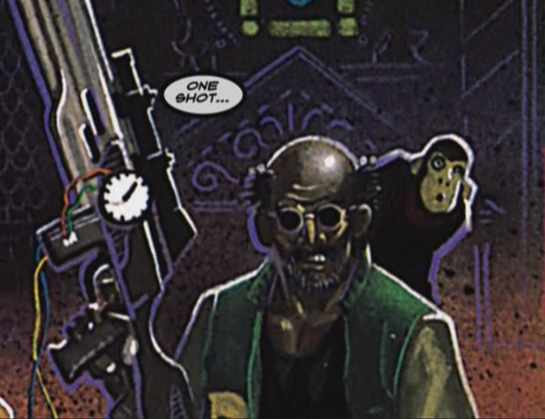 The Terminator: One Shot picks up in 1984 with the events surrounding another T-800 sent back just before the one from The Terminator who follows an alternate mode of tracking (via internet access to the "most current" phone book) that leads it to her L.A. gallery where it finds records of Sarah's planned honeymoon in San Francisco and her rolodex of contacts. There, this 4th Sarah Connor (formerly Sarah Lang) is plotting to murder her artist husband Michael Connor for a massive inheritance. An aged Resistance fighter sent back in 1955 to watch over Sarah Connor in case another terminator arrives (Ellis Ruggles-then 21) has spent his life in the past as a soldier and a cop, picks up on the chaos surrounding the events of The Terminator[1] and follows the leads north to protect this other Sarah Connor with an anti-terminator "Electro-Mech Fazer" weapon whose future-tech unique components were smuggled back in time by Ruggles in an unmentionalbly uncomfortable way. He also mentions an additional Resistance fighter sent to 1965 - Corporal Graves who arrived from the future on a freeway in Los Angeles and was hit and killed five seconds later.